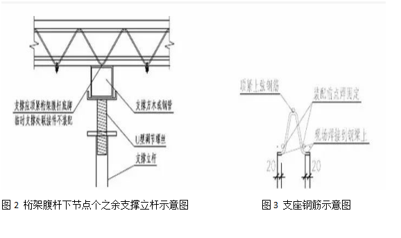 圖2 桁架腹桿下節(jié)點(diǎn)個(gè)之余支撐立桿示意圖 圖3 支座鋼筋示意圖