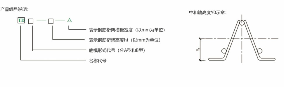 其中” TD “是名稱代號,B 是底模代號(分A型和B型)A型是576寬,B型是600寬,4則是區(qū)別于上下弦鋼筋的大小,數(shù)字越大表示鋼筋越大100表示